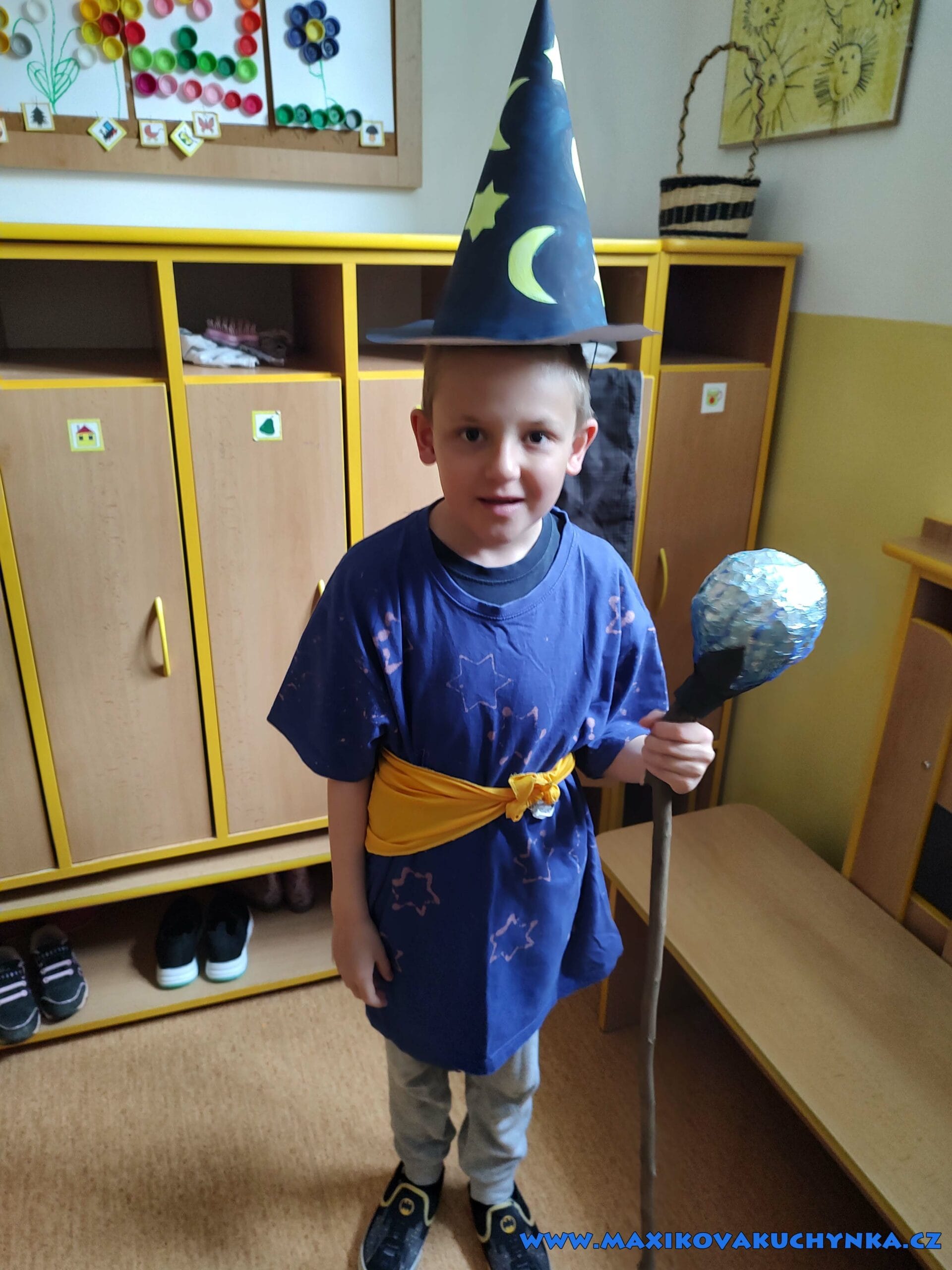 Toto jaro se opět nese v duchu výroby kostýmů a masek. Maxíka ve školce čekal čarodějnický slet a děti si měli přinést nějakou jednoduchou masku nebo doplněk. Max si přál velký špičatý klobouk a hůlku. Za dvě hodiny práce jsme společně vytvořili celý kostým čaroděje.